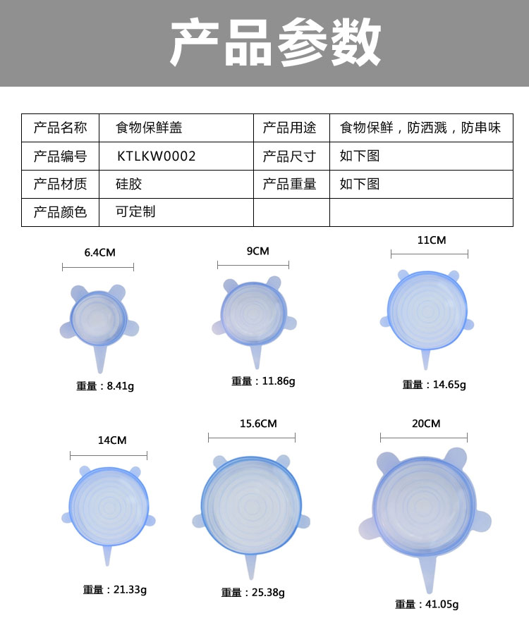 產品名稱:可拉伸多功能硅膠保鮮蓋六件套