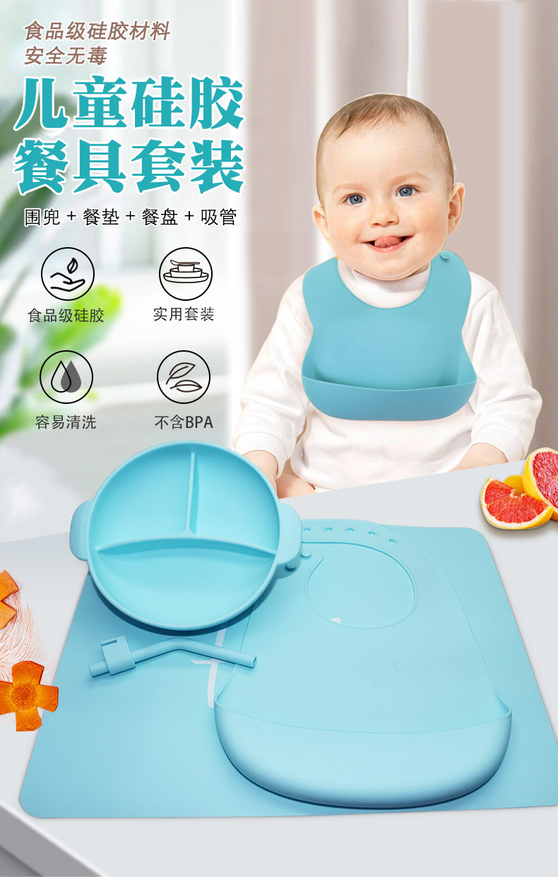 套裝組合:圍兜+餐墊+餐盤(pán)+吸管