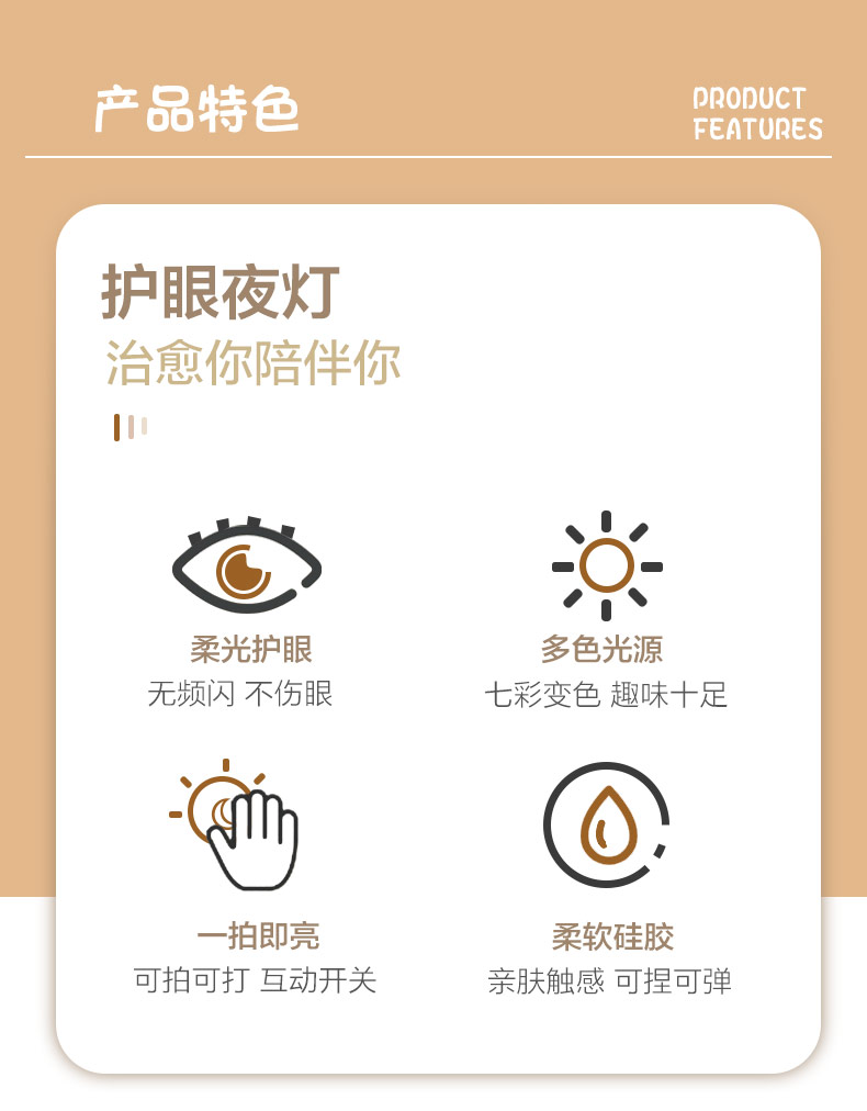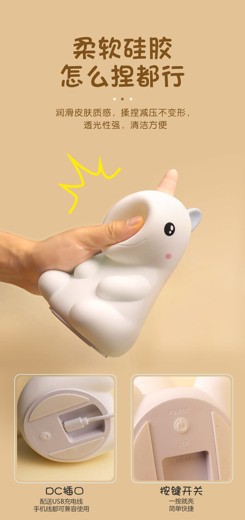 您的位置:首頁 > 產(chǎn)品中心 > 硅膠家居用品 > 拍拍燈 > 獨(dú)角獸小夜燈起夜嬰兒喂奶照明小臺燈臥室燈創(chuàng)意燈