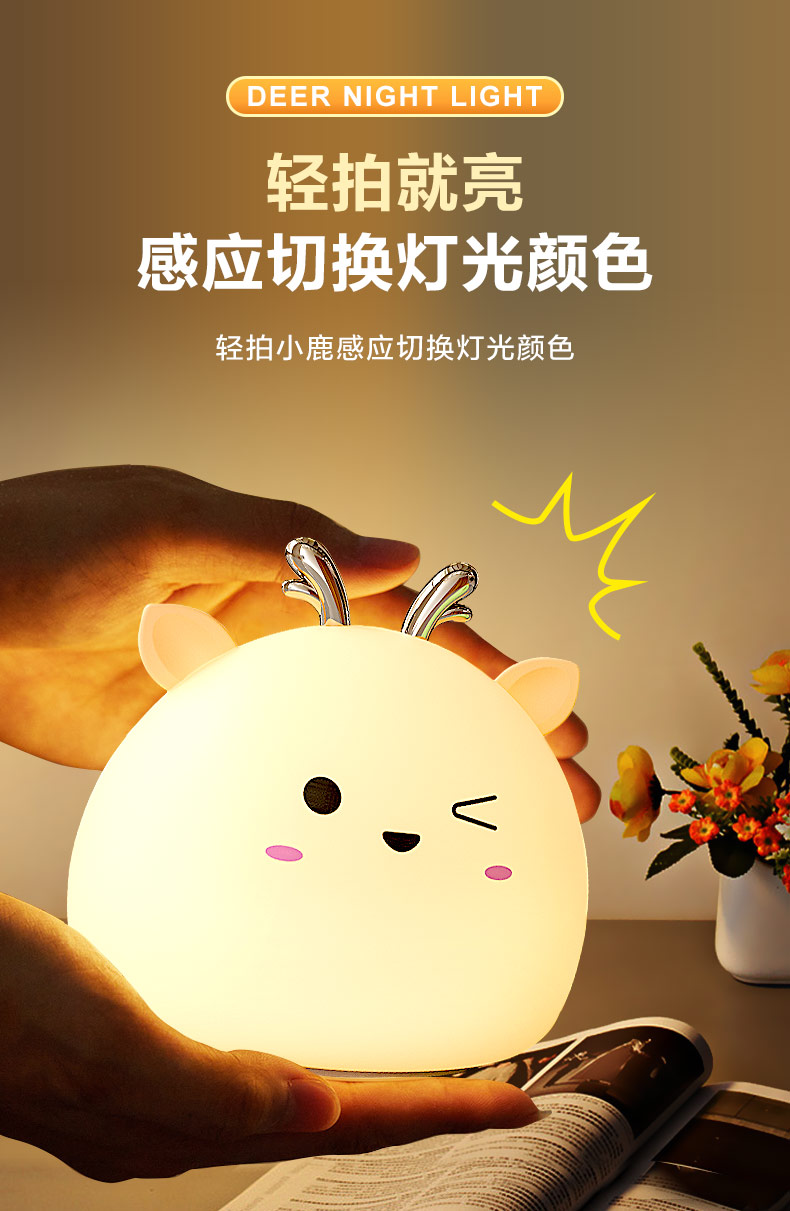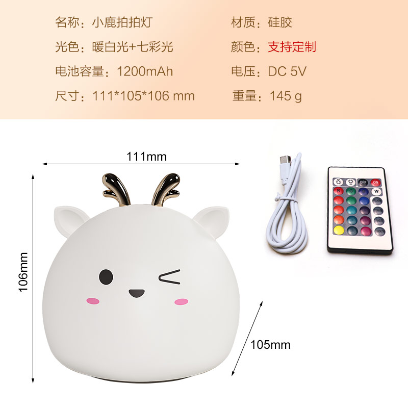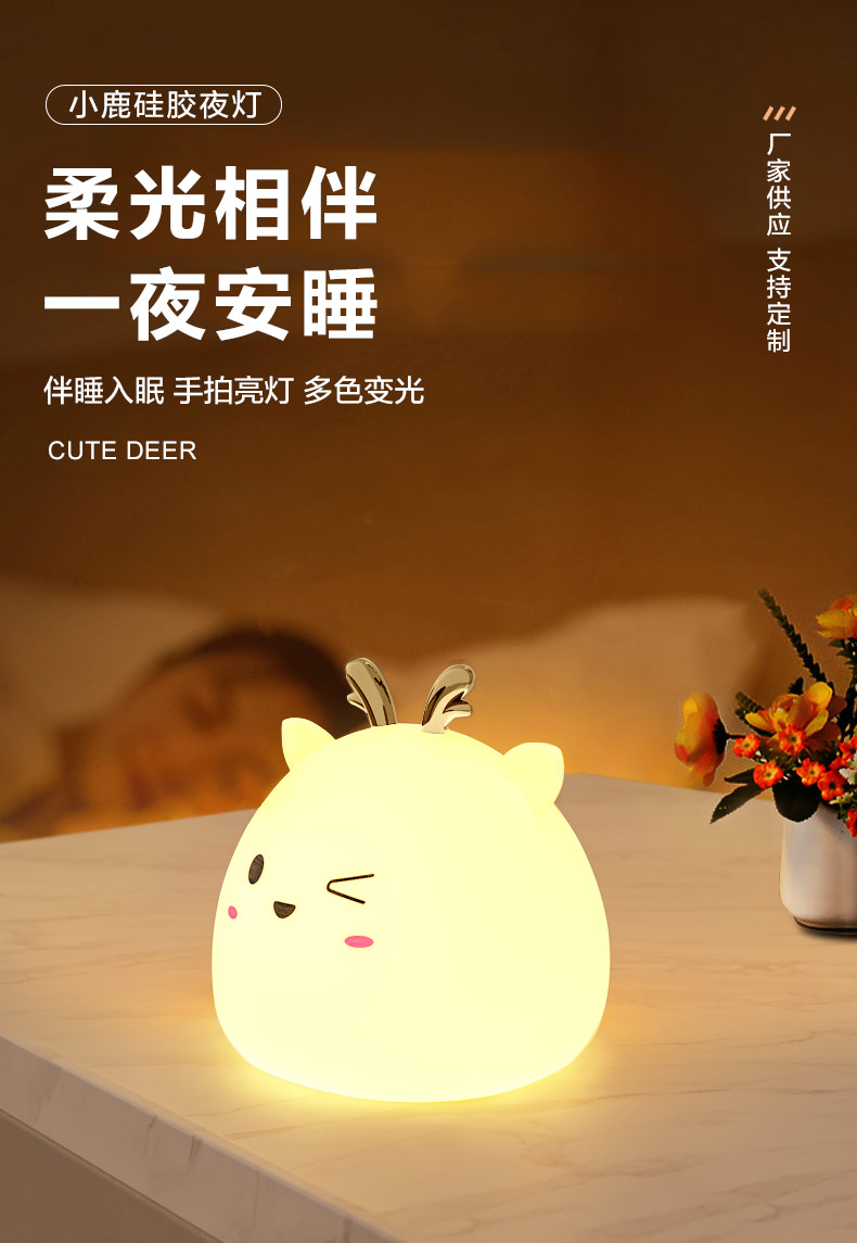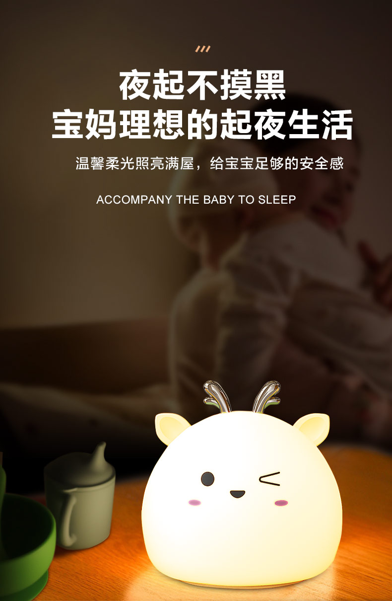 您的位置:首頁 > 產(chǎn)品中心 > 硅膠家居用品 > 拍拍燈 > 小鹿硅膠小夜燈 拍拍感應燈喂奶起夜燈