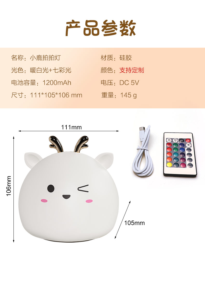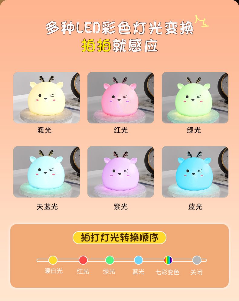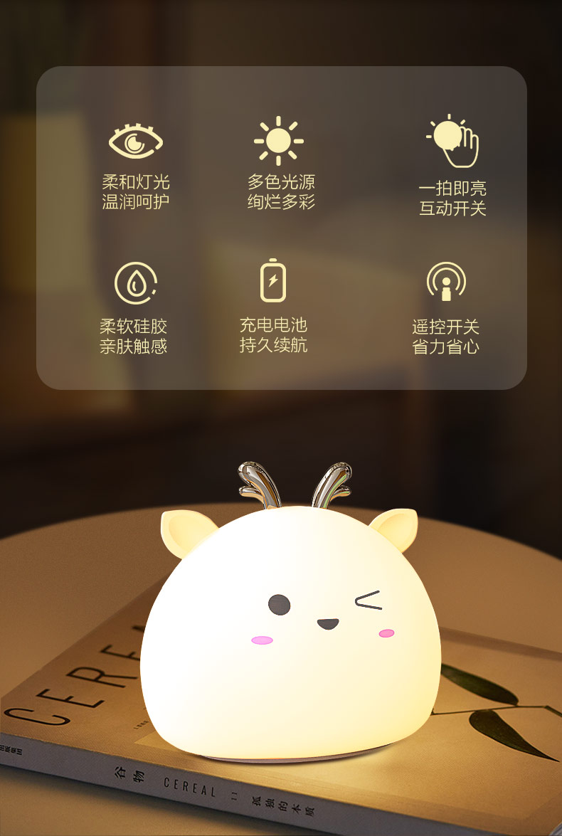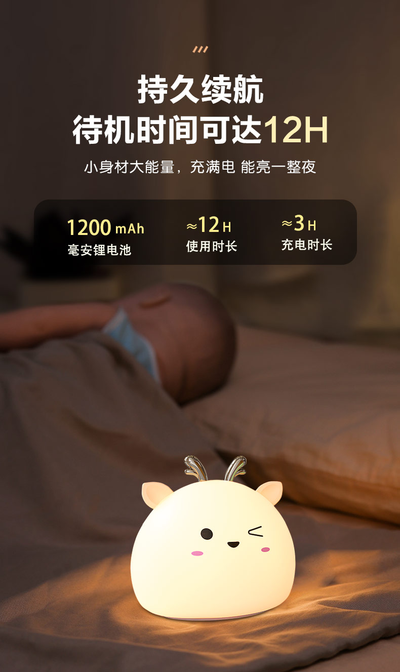 您的位置:首頁 > 產(chǎn)品中心 > 硅膠家居用品 > 拍拍燈 > 小鹿硅膠小夜燈 拍拍感應燈喂奶起夜燈
