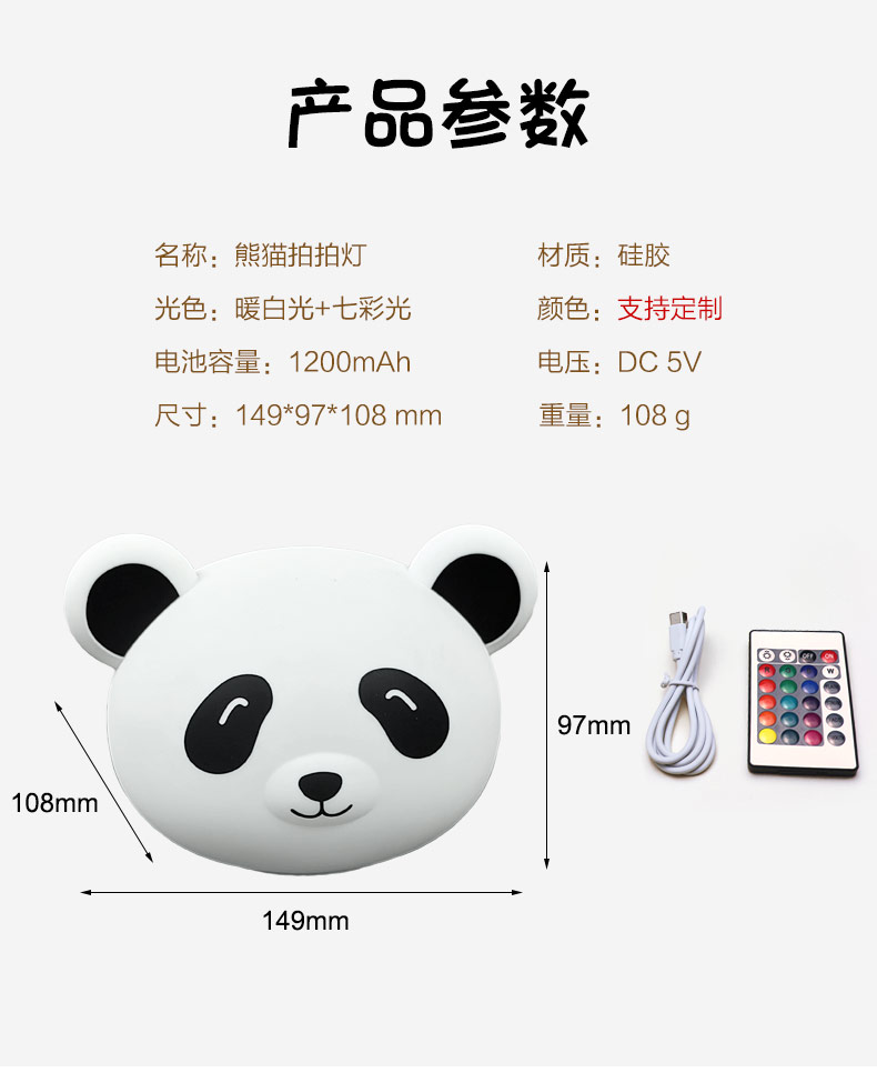 您的位置:首頁 > 產(chǎn)品中心 > 硅膠家居用品 > 拍拍燈 > 熊貓拍拍燈 創(chuàng)意夜燈硅膠卡通發(fā)光玩具充電拍拍燈 可加印LOGO批發(fā)