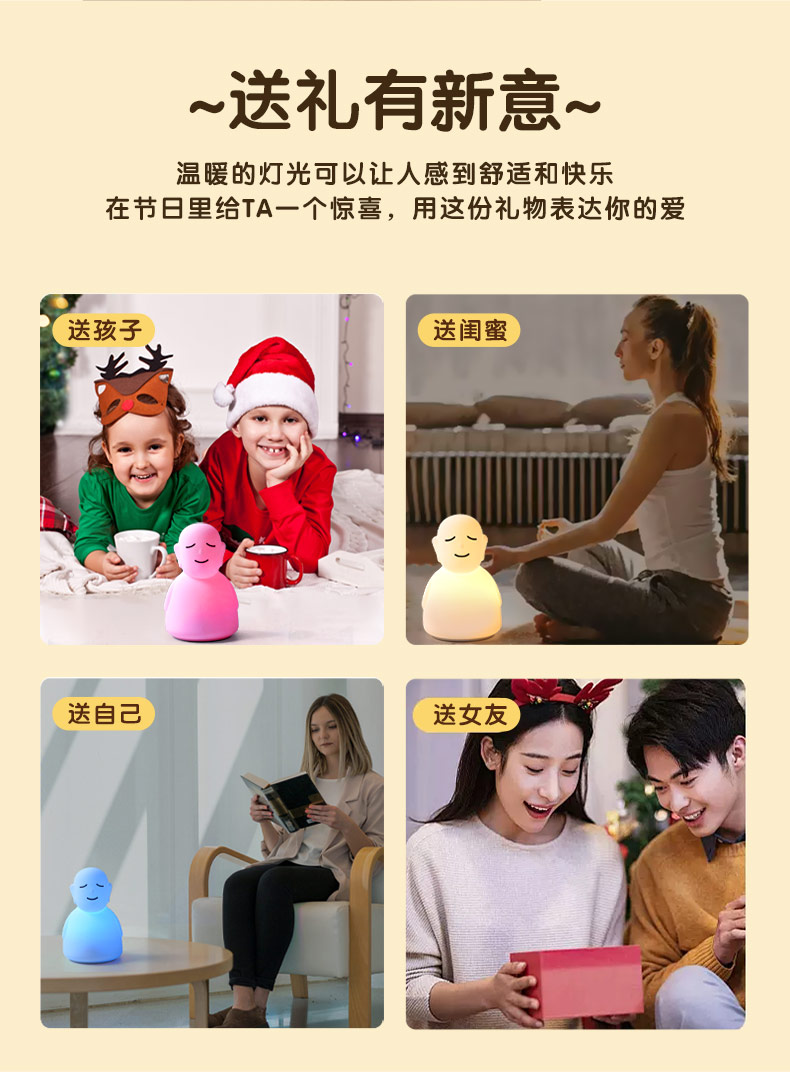 跨境LED硅膠拍拍佛主小夜燈夜間寶寶安撫睡拍拍燈遙控器感應(yīng)照明